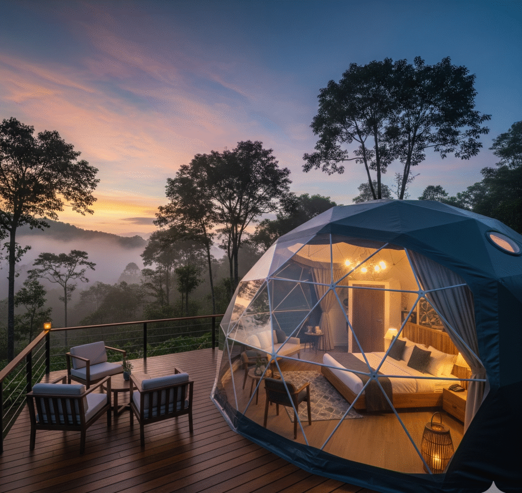 A-Frames, Container Homes, Domes & Tents for unique resort experiences.